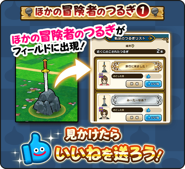 フィールド>マップ>「軌跡のつるぎ」ボタンから、今いる場所の近くにつるぎを設置することができるぞ!