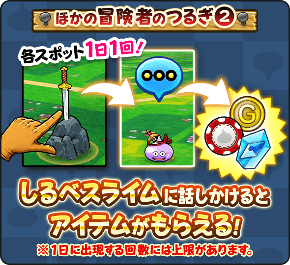 | 【獲得できる報酬】 超大量のゴールドと経験値 レアおたからボックス5こ 経験の珠1こ ゴールドの珠1こ |