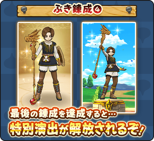 | 竜神王の杖 | 竜神王のしゃくねつ、永遠の黒炎、ドラゴン系へのダメージ +5%、スキルの斬撃・体技・ブレスダメージ +7% |
