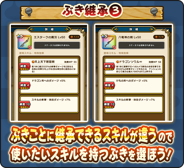 | エスタークの魔刃 | 天上天下断獄斬、ドラゴン系へのダメージ +5%、スキルの斬撃・体技ダメージ +7% |