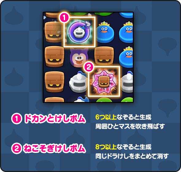けしボムはドラけしをたくさんなぞって消した際に生成される特別なドラけしです。