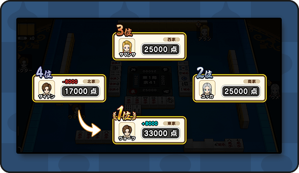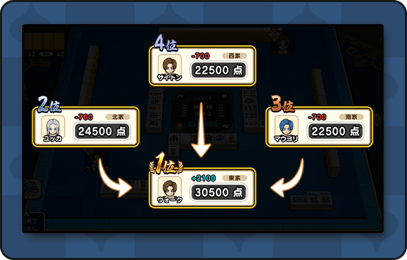 全ての局が終わった後に一番持ち点の高いプレイヤーの勝ちです。