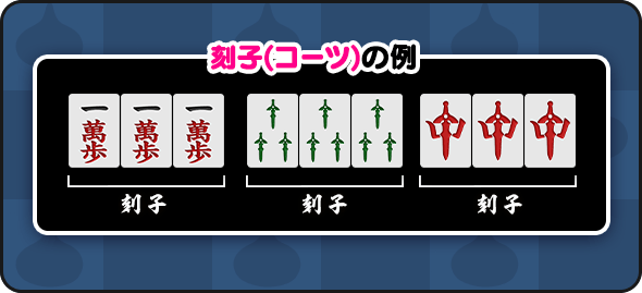 刻子とは、同じ牌で作る3枚1組の組み合わせのことです。