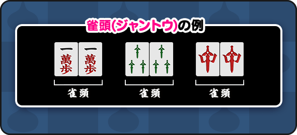 雀頭とは、同じ牌で作る2枚1組にした組み合わせのことです。