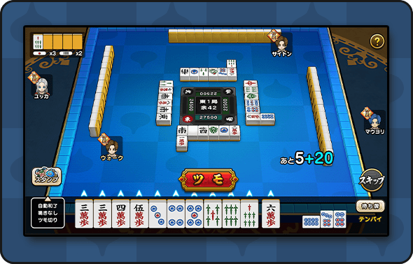 ツモが成立すると、対局相手全員から点数を獲得できます。