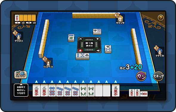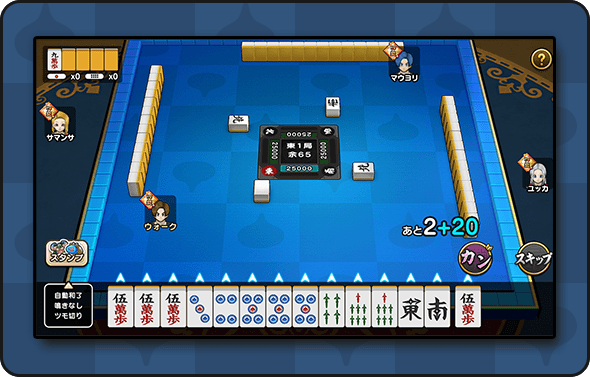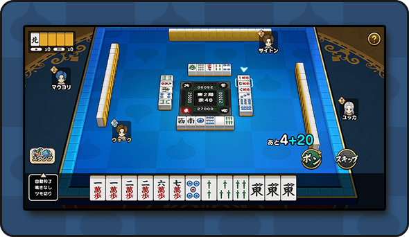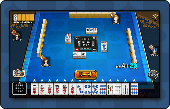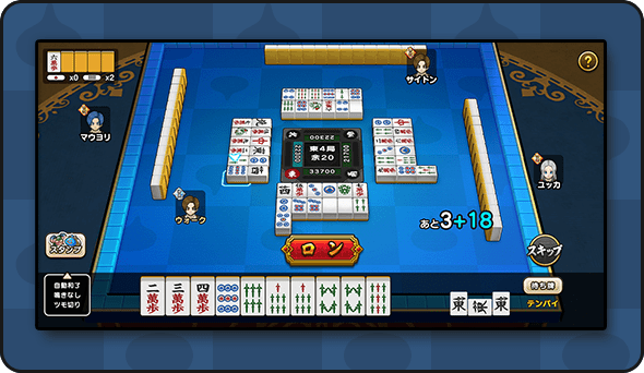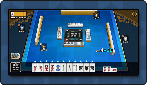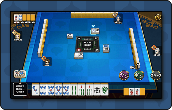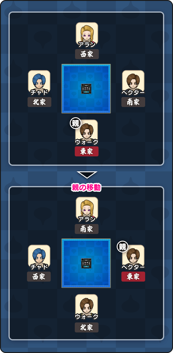 4人のプレイヤーは試合開始時に、東家(トンチャ)、南家(ナンチャ)、西家(シャーチャ)、北家(ペーチャ)と呼ばれる席にランダムに振り分けられ、東家のプレイヤーには親という役割が与えられます。