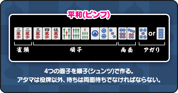 その他、有名な役にはタンヤオ、ピンフがあります。