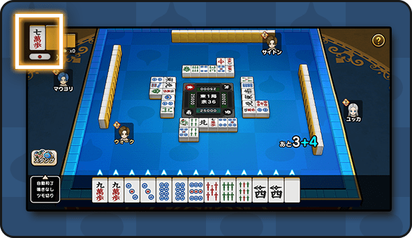 ドラ牌は、画面左上に表示されている牌の「次の牌」となります。
