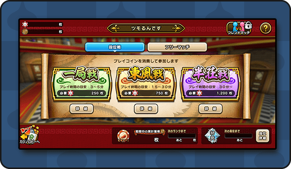 ※「半荘戦」は、段位「二級」から挑戦可能となります。