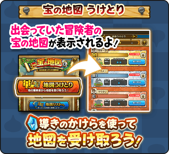 冒険の中で「出会っていた冒険者」から導きのかけらを使って、宝の地図を受け取ることができる!