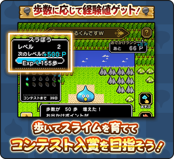 たくさん歩いてスライムをレベルアップさせよう!