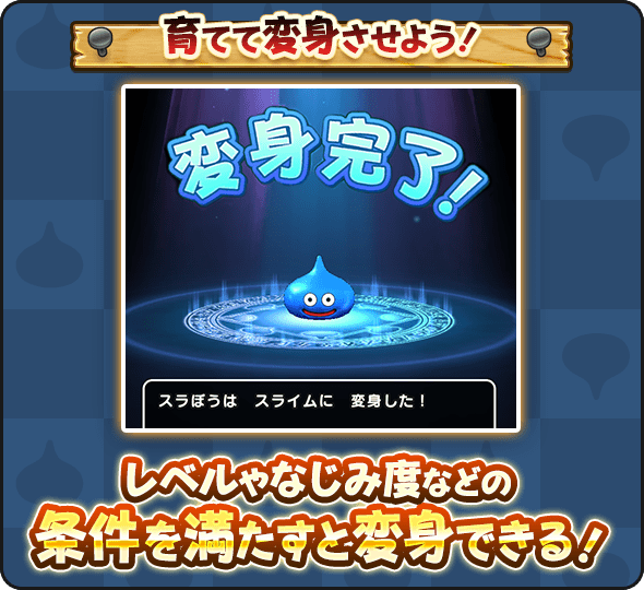 ※スライムは、レベルとなじみ度が一定以上になると自動で変身します。