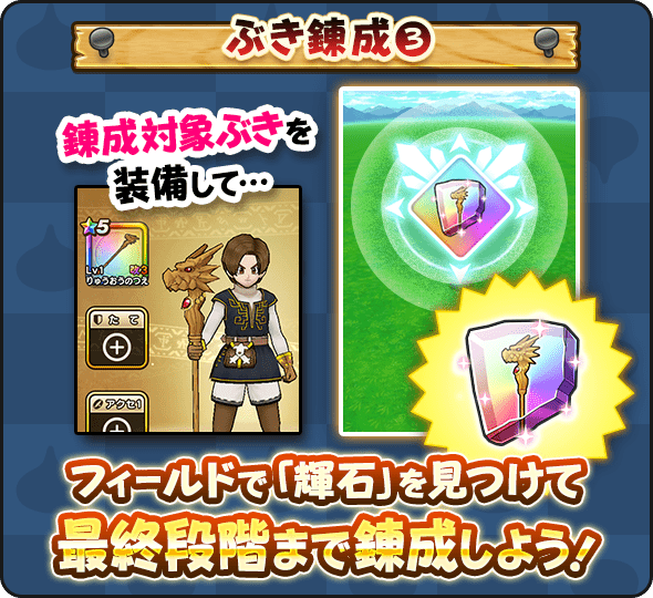 「ぶき錬成」をするとスキルがより強力になるなど、ぶきの性能がパワーアップするぞ!