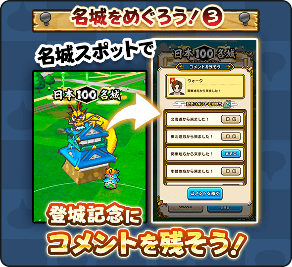 また、名城スポットに登城することで記念のコメントを残すことができるぞ!