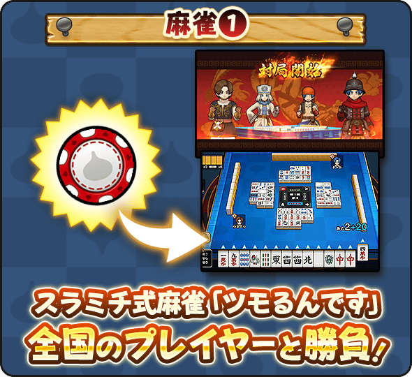 スラミチ式麻雀「ツモるんです」では、全国のプレイヤーと対戦できるぞ!