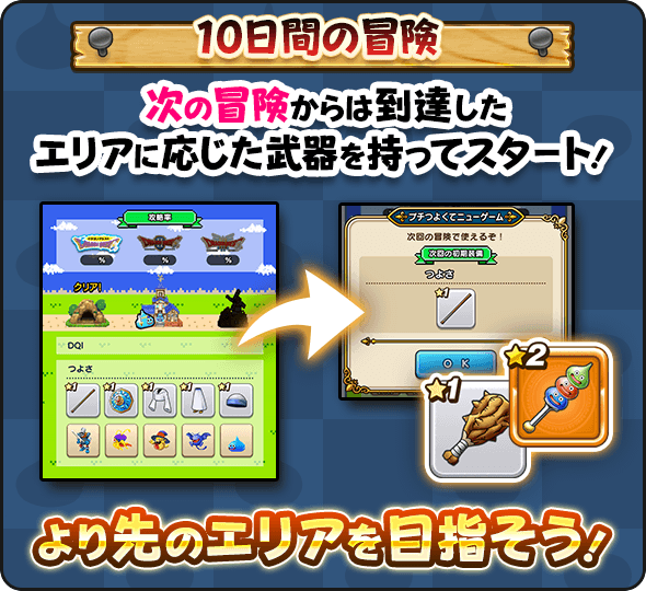 10日間のサイクルの終了後、夢冒険の進行度によって、より強い装備を持った状態で次の夢冒険を始めることができる。