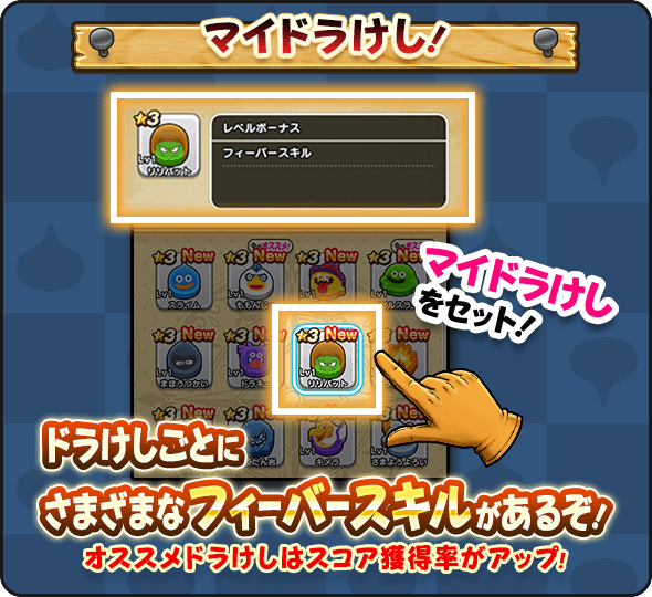 ドラけしにはそれぞれフィーバースキルがあり、マイドラけしに設定することでフィーバー時にスキルが発動します。