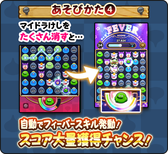 マイドラけしに設定したドラけしを一定数消すとフィーバースキルが自動で発動!