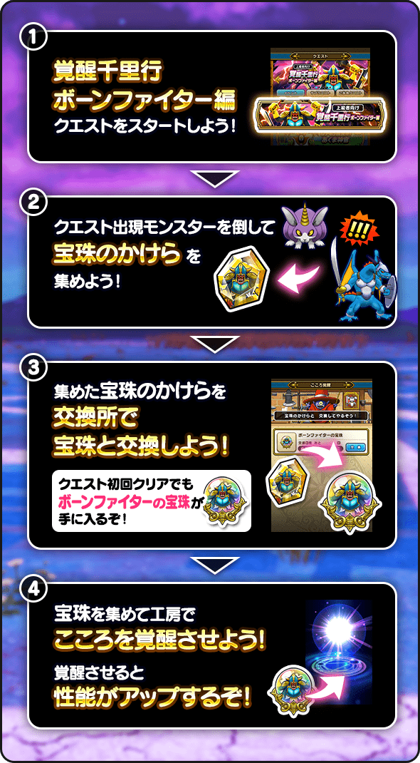 イベントクエスト「覚醒千里行 ボーンファイター編」を受注すると、宝珠のかけらをドロップするモンスターが出現!