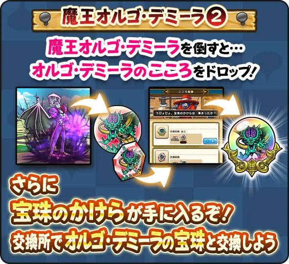 「宝珠のかけら」を集めて「オルゴ・デミーラの宝珠」と交換し、「オルゴ・デミーラのこころ」を覚醒させよう!